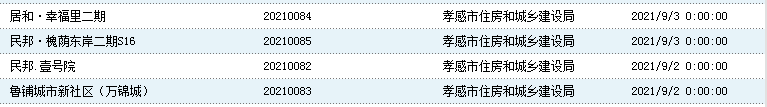 ? ? ? ?9月1-9月3日孝感4家樓盤取得預(yù)售證
