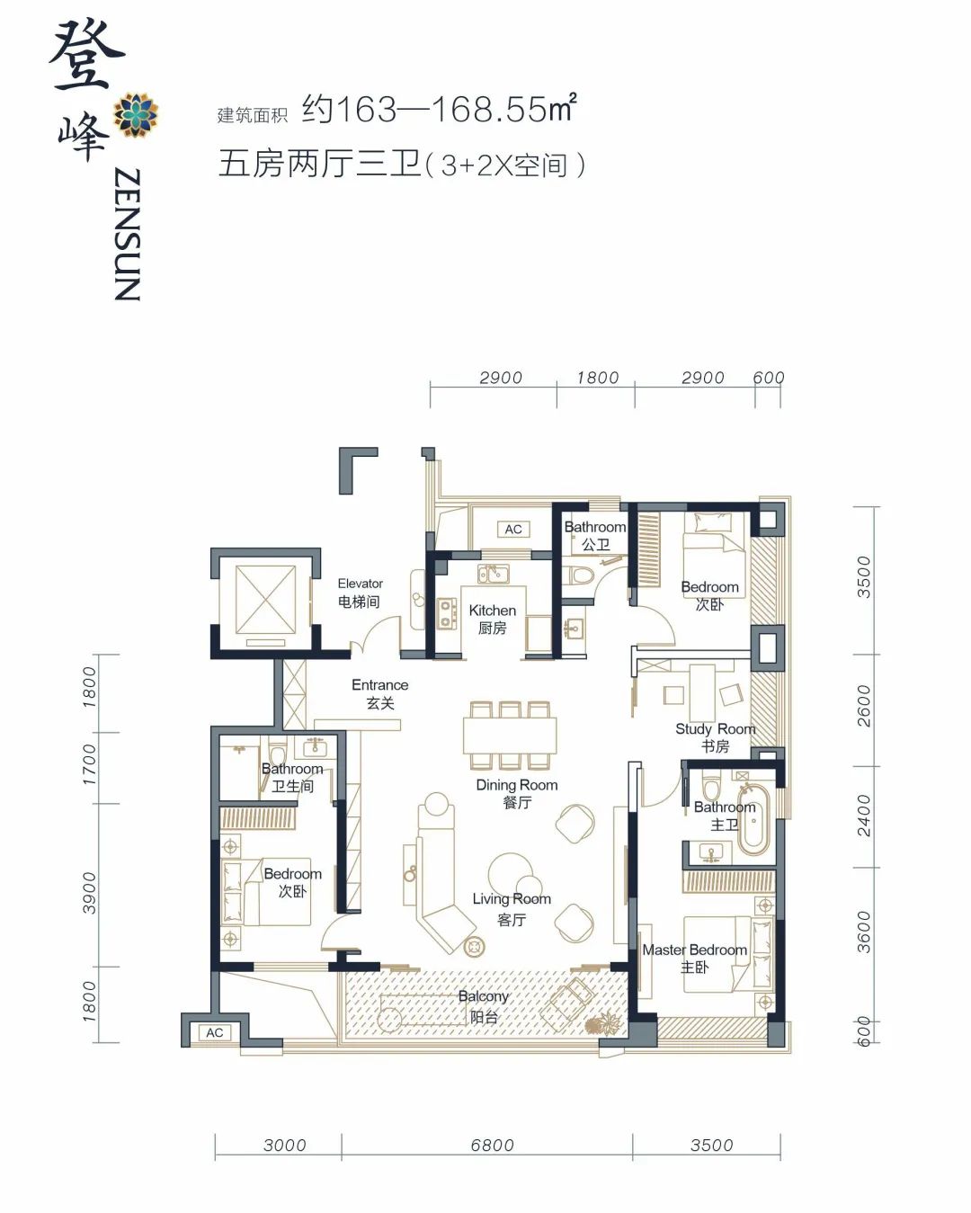 ? ? ? ?值得一提的是建面約163㎡的戶型打造了5個(gè)房間,是市面上難得一見的戶型。
