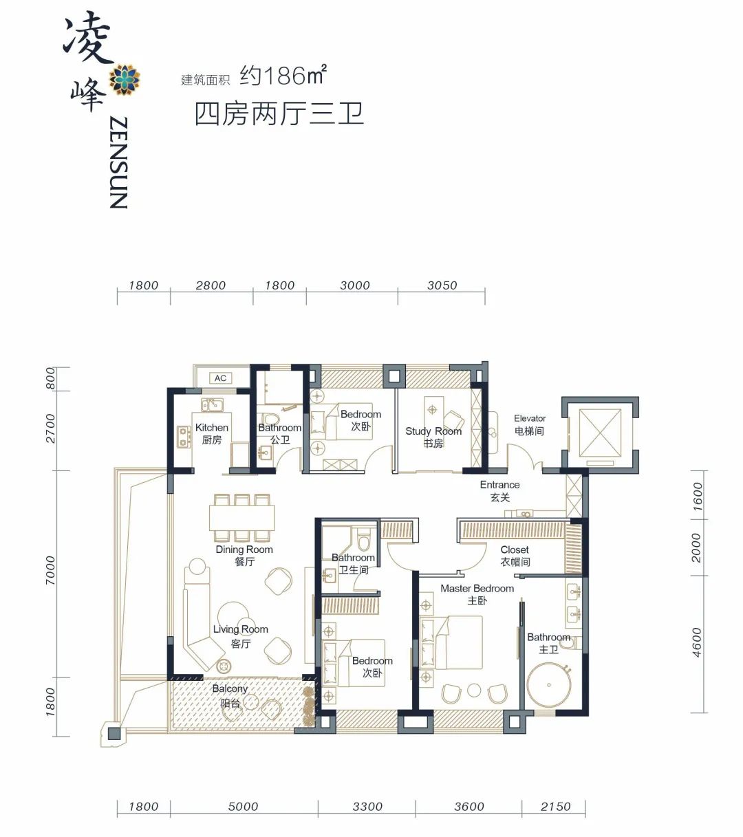 ? ? ? ?建面約110㎡、123.48㎡是經(jīng)典的3室2廳2衛(wèi)經(jīng)典格局;建面約140.27㎡是4室2廳2衛(wèi)戶型;建面約163㎡則打造為5室2廳3衛(wèi);建面約186㎡為4室2廳3衛(wèi)戶型。