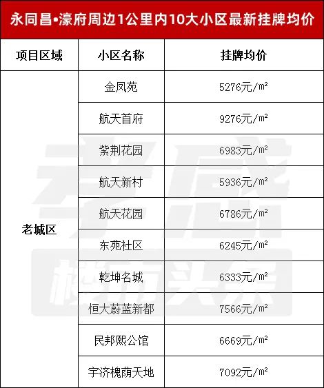? ? ? ?小編統(tǒng)計(jì)了項(xiàng)目輻射范圍一公里內(nèi)的小區(qū),永同昌?濠府周邊小區(qū)環(huán)繞,且都是老小區(qū),二手房掛牌房價(jià)在5276-9276元/㎡之間。