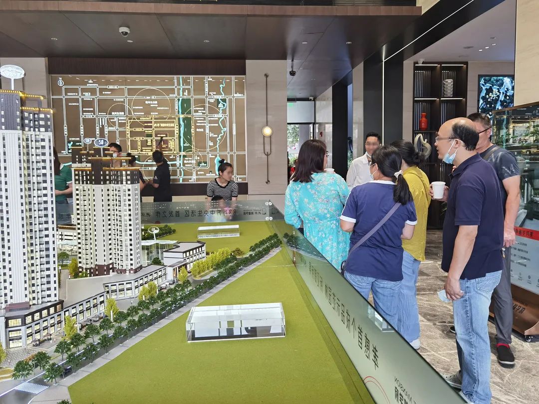 到場的人不是在舉著手機拍照,就是在興奮地討論著項目的各種細節(jié),部分購房者圍在沙盤前,紛紛表示對該項目頗有意向。