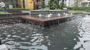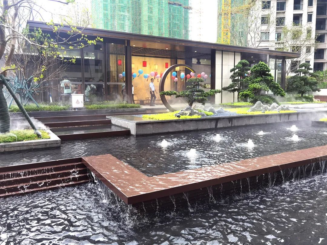 會所前打造的疊溪水瀑,步移景異,亭臺、流水加上綠植點綴,錯落有致,意境盡顯...精致設(shè)計細節(jié)處處可見。