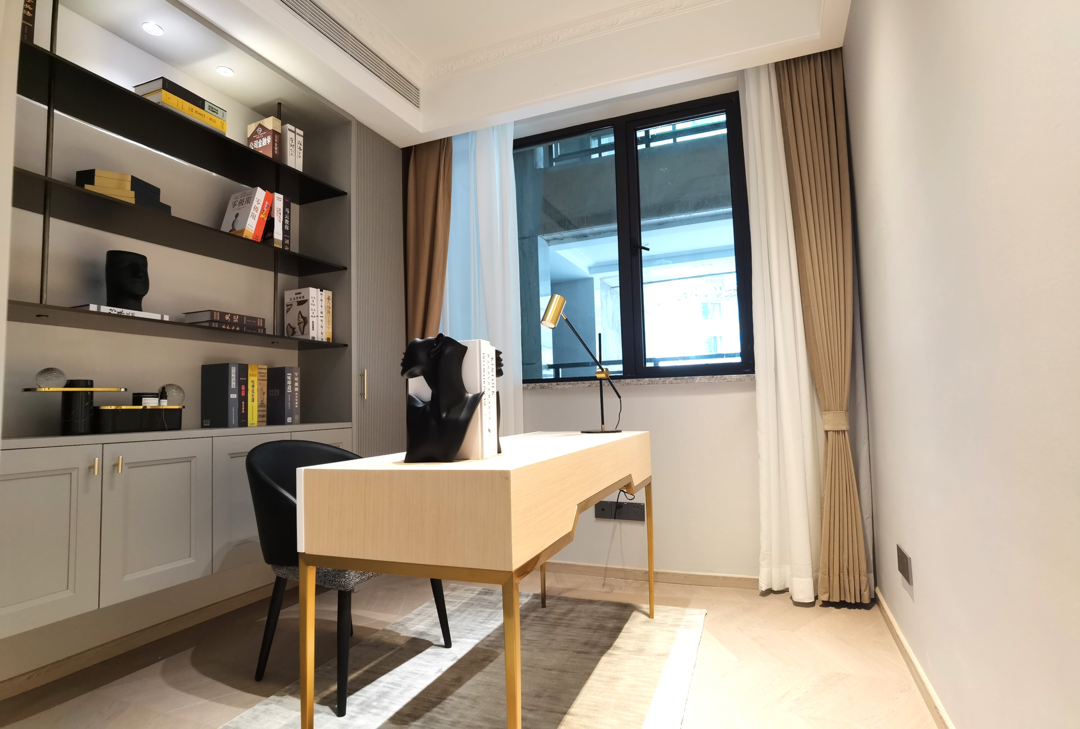 比如可以做成客廳+開放式書房,最大程度利用了面積。