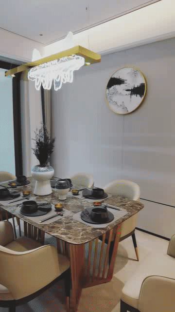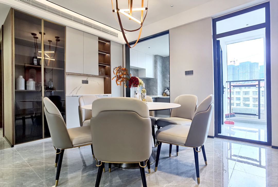 餐客一體和U型廚房的設(shè)計,說明公區(qū)的尺度也一點都不含糊。