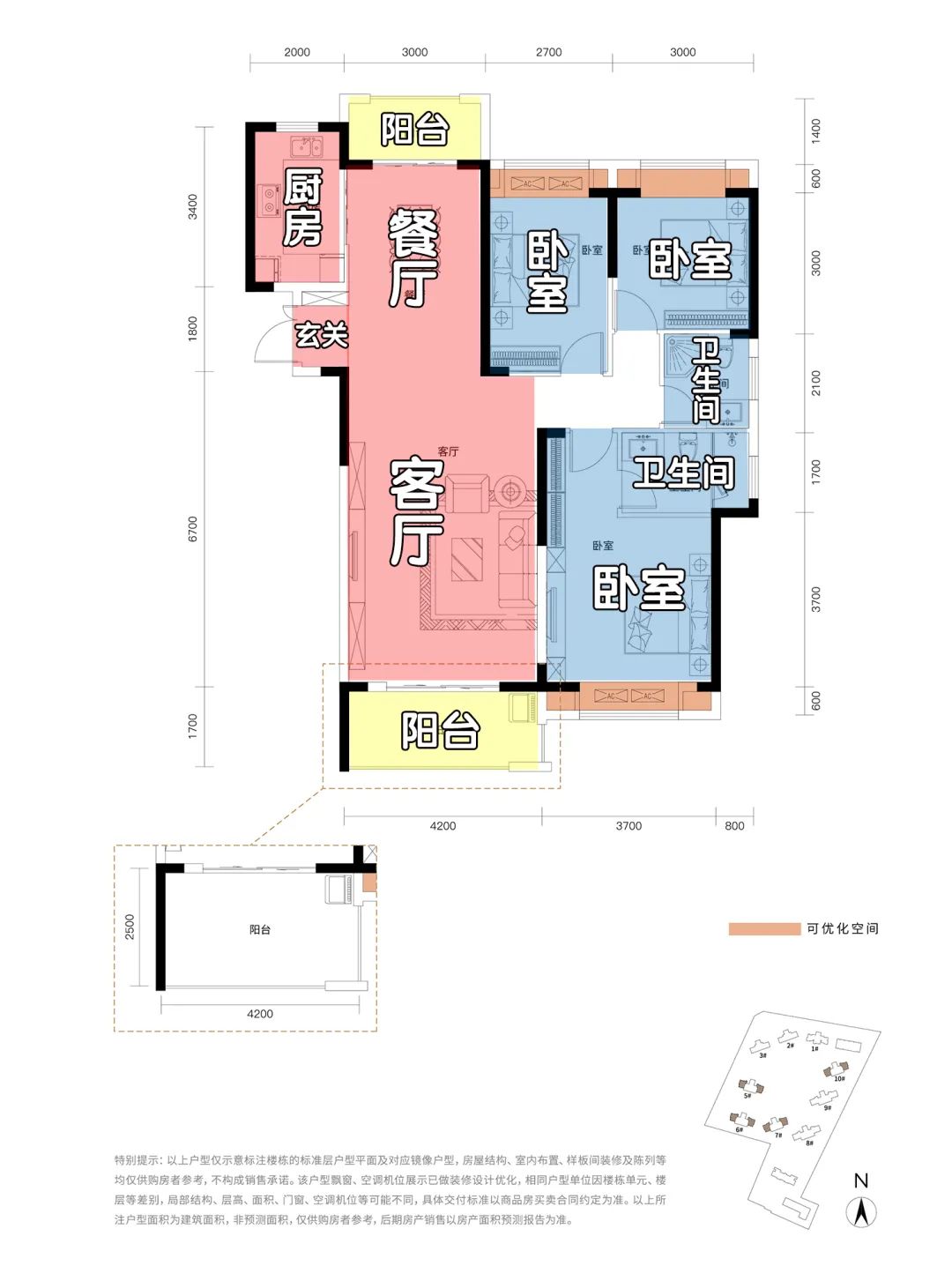 項目目前主推3個戶型,分別為建面約105㎡/135㎡/168㎡。