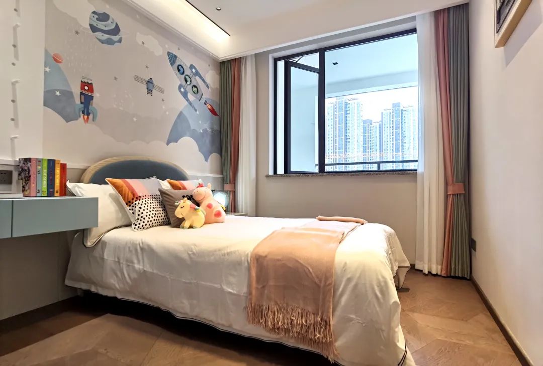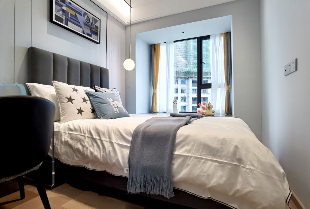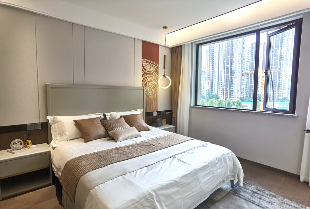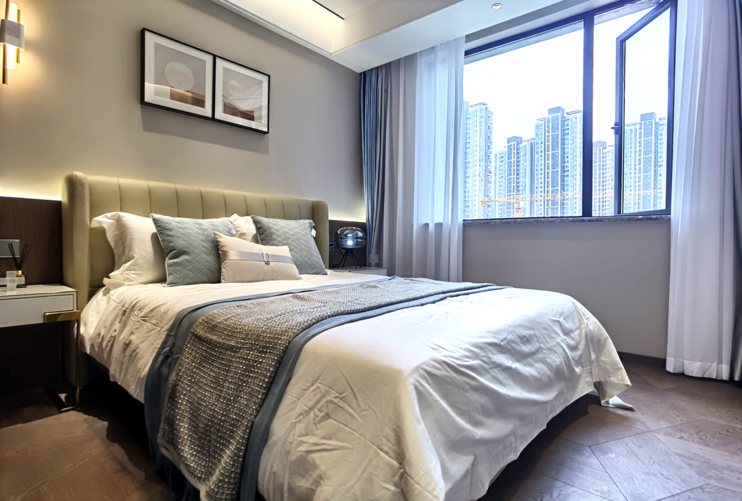 朝南3個臥室,自帶景觀飄窗,空間分明,并且空間設(shè)計非常合理,有效的避免了走道的浪費,同時加大了臥室的進深。