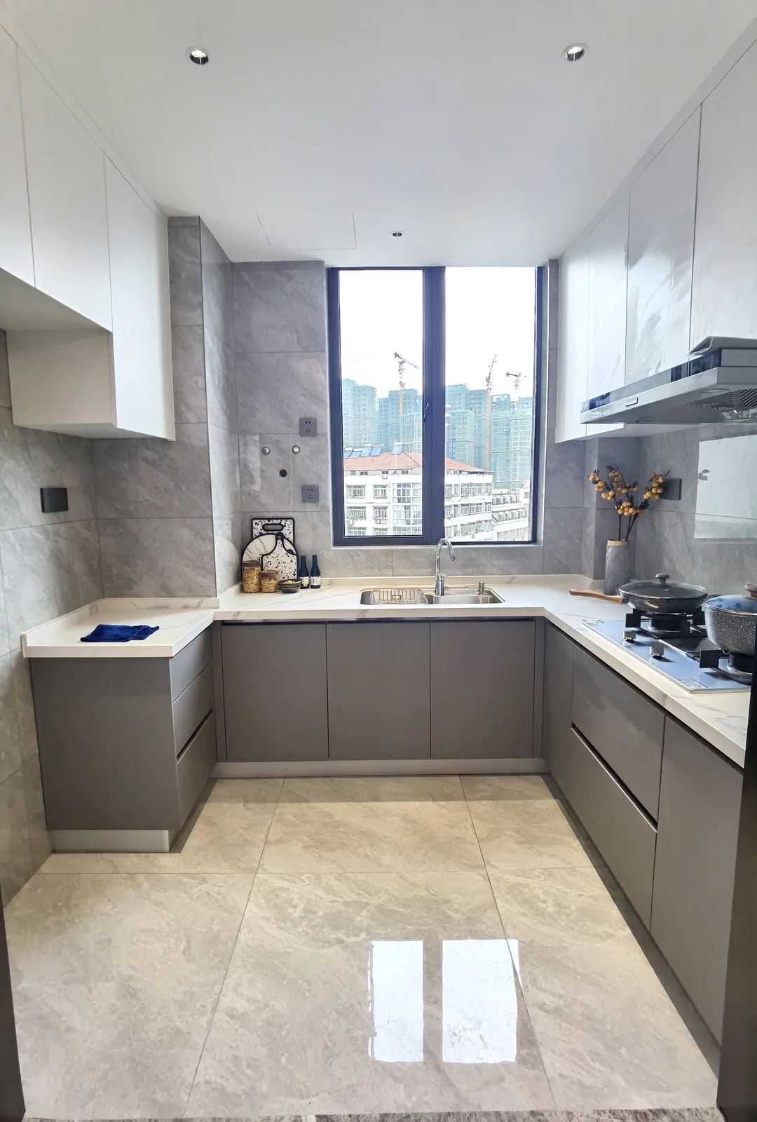 開放式L型廚房,讓廚房的臺面更長,極具空間感,連接餐廳,可互動餐桌,增強空間互動。