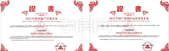 “2021中國房地產(chǎn)百強企業(yè)”榮譽證書(左) “2021中國產(chǎn)業(yè)園區(qū)運營優(yōu)秀企業(yè)”榮譽證書(右)