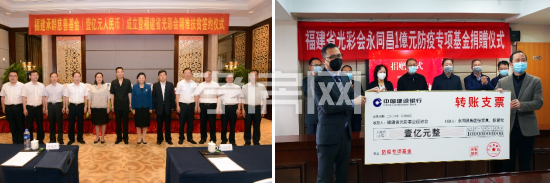 “承群慈善基金會”簽約儀式(左)、“光彩會永同昌防疫專項基金” 捐贈儀式(右)留影