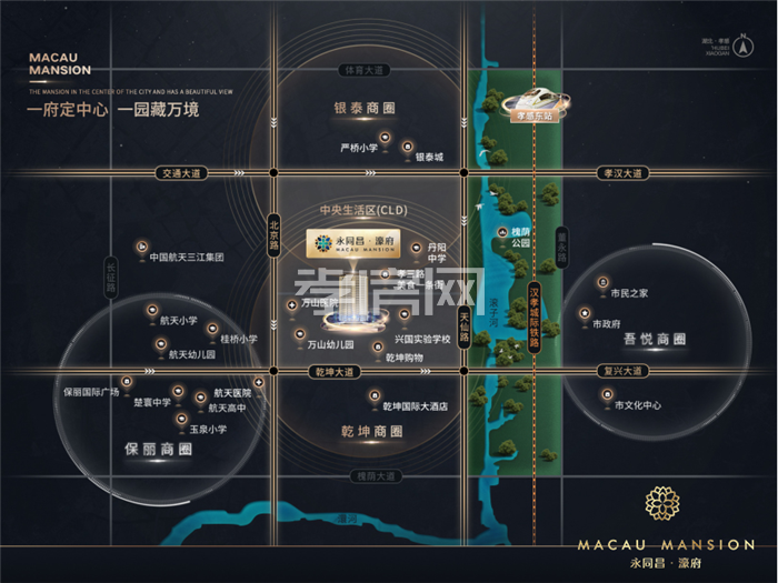 ? ? ? ?孝感永同昌·濠府項目位于與東城區(qū)毗鄰的老城區(qū),距離孝感城心最大生態(tài)公園——槐蔭公園 500米,屬于孝感最核心的中央居住區(qū)(CLD)。該區(qū)域處于交通大道以南、槐蔭大道以北、北京路以東、天仙路以西的圍合區(qū)域,坐落于孝三路中段,域內(nèi)及周邊有市政府、 乾坤購物、銀泰城、丹陽中學(xué)、孝感一中、航天醫(yī)院、孝感東站、槐蔭公園等城市配套,集行政、商業(yè)、教育、醫(yī)療、交通、休閑等頂級資源于一身,是孝感名副其實的“高端居住區(qū)”。