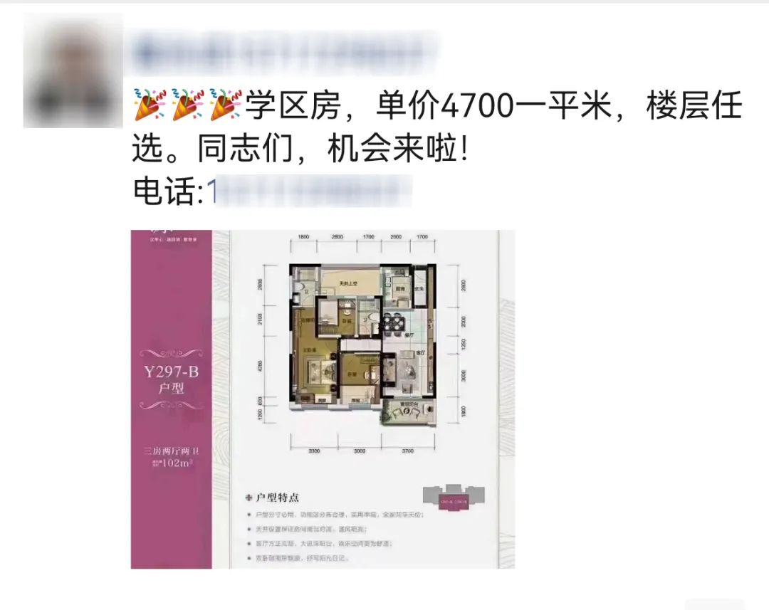 ? ? ? ?本月,南大片區(qū)品牌學(xué)區(qū)房,推出建面約102㎡房源,單價4700元/㎡,樓層任選,此前,該項目均價售價為5500元/㎡。