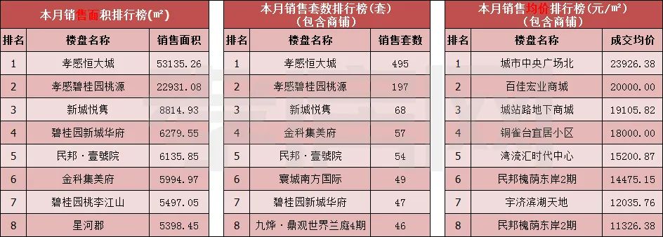 ? ? ? ?同上月一樣,孝感恒大城銷量持續(xù)上漲占據(jù)榜首位置。