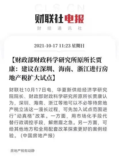 ? ? ? ?另外,關(guān)于全國的樓市政策方面,喊了很多年的“房地產(chǎn)稅”終究是來了。