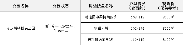 ? ? ? ?今年7月份,孝感市人民政府網(wǎng)發(fā)布一則消息:城鐵邊角地變身生態(tài)公園--孝漢城鐵橋底公園,位于槐蔭大道至董永路的鐵路橋沿線,同時(shí)也意味著東城板塊利好再升級(jí)。