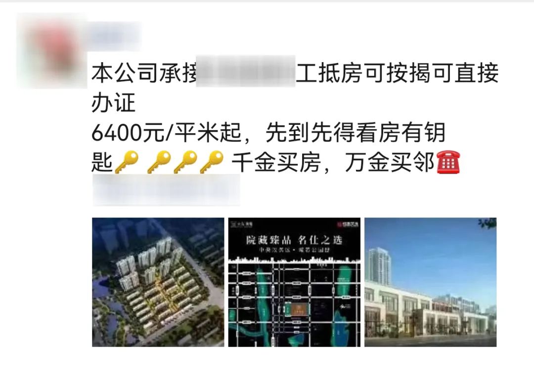 ? ? ? ?翻開朋友圈和孝感各大賣房群、渠道群、同行群等,有不少工抵房的信息。