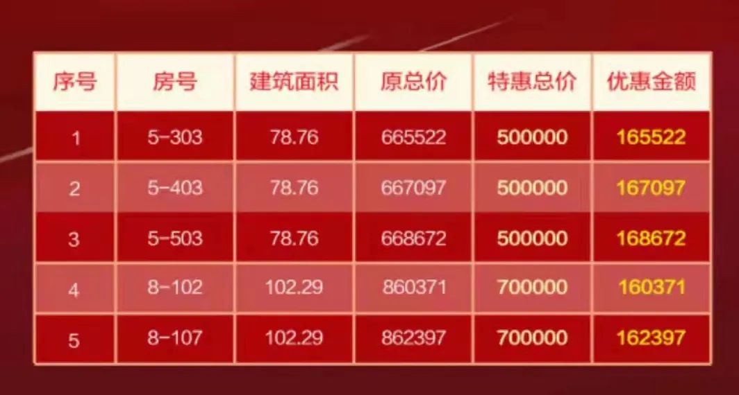 ? ? ? ?但項(xiàng)目推出的5套特價(jià)房源,平均優(yōu)惠都在16萬左右,也是最少省了一輛小轎車的價(jià)格的。