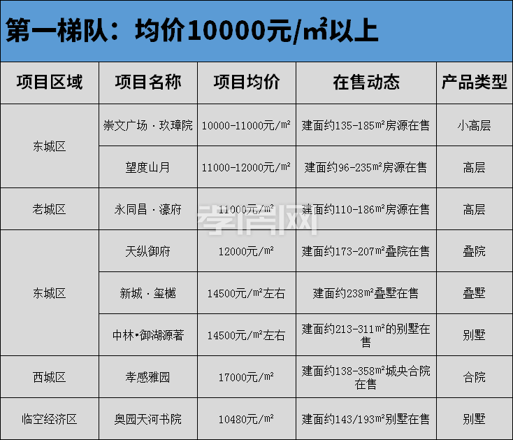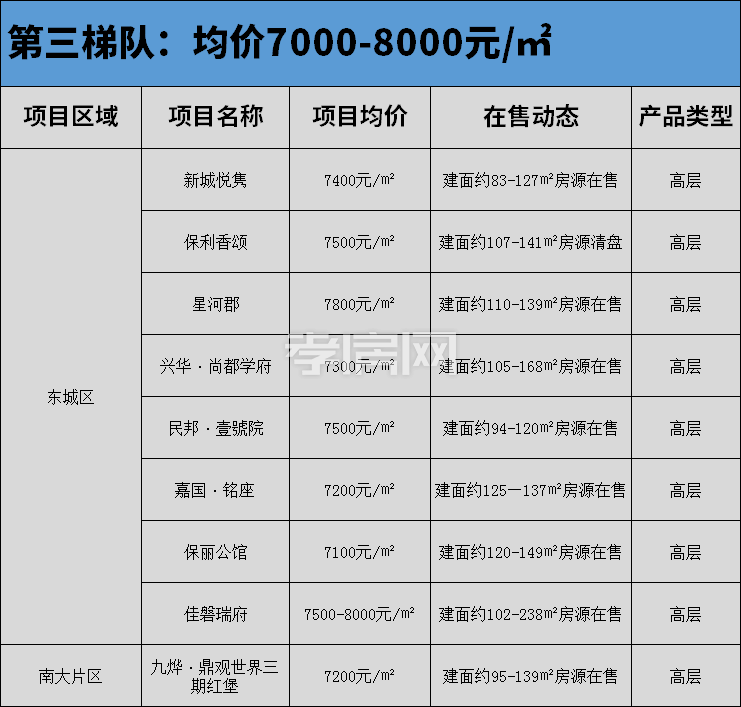 ? ? ? ?這個梯隊的項目主要集中在東城區(qū)、老城區(qū),臨空經濟區(qū),其中高層項目有3個,別墅項目有5個。
