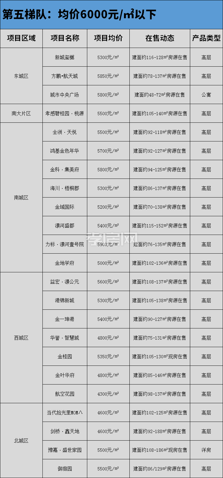? ? ? ?第5梯隊(6000元/㎡以下)23盤: