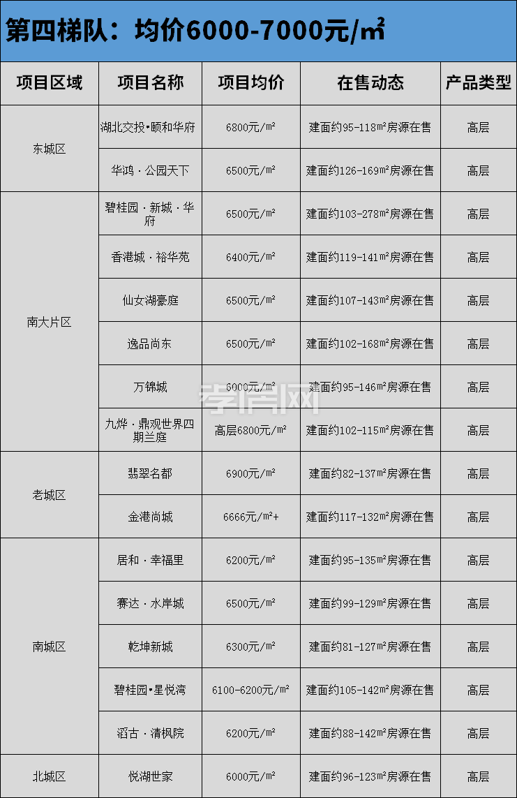 孝感7大區(qū)域62樓盤梯隊統(tǒng)計