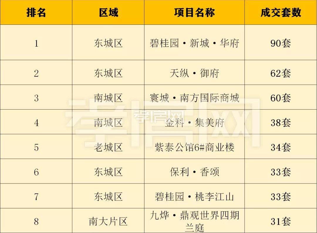 ? ? ? ?2、在11月銷量排行榜top8榜單中,東城區(qū)依然占據(jù)半壁江山,其次是南城區(qū),在市場下行的情況下,購房群體的大方向不變。