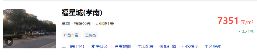 ? ? ? ?根據(jù)二手房網(wǎng)站數(shù)據(jù)顯示,小區(qū)目前的掛牌價(jià)為7351元/㎡。