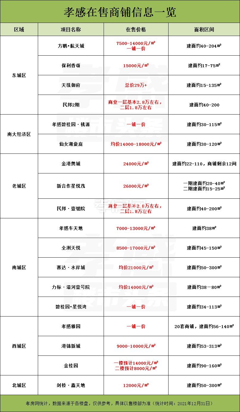 ? ? ? ?那么目前孝感孝感有哪些商鋪在售呢,話不多說,我們一起看看一看!