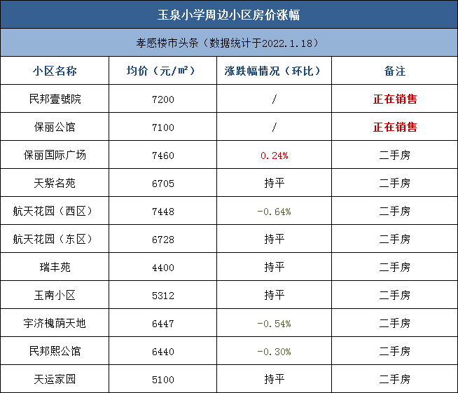 ▼ 孝感市玉泉小學(xué)周邊小區(qū)均價(jià)7460-4400/㎡