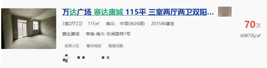 ? ? ? ?看下周邊年限稍微靠近一點(diǎn)的二手房,掛出來的單價(jià)對比下來價(jià)差上千+,賽達(dá)康城比較靠近萬達(dá),能讀黃香路小學(xué),明顯比其余兩個盤價(jià)格更高,這時就顯出地段的優(yōu)勢。
