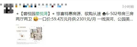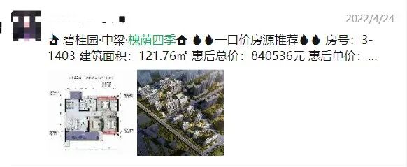 ? ? ? ?臨近五一小長假,很多樓盤的優(yōu)惠特價房比較多,碧桂園中梁槐蔭四季同樣的,3#樓清棟特惠實在很吸引人,朋友圈就有不少中介以此吸引客戶。