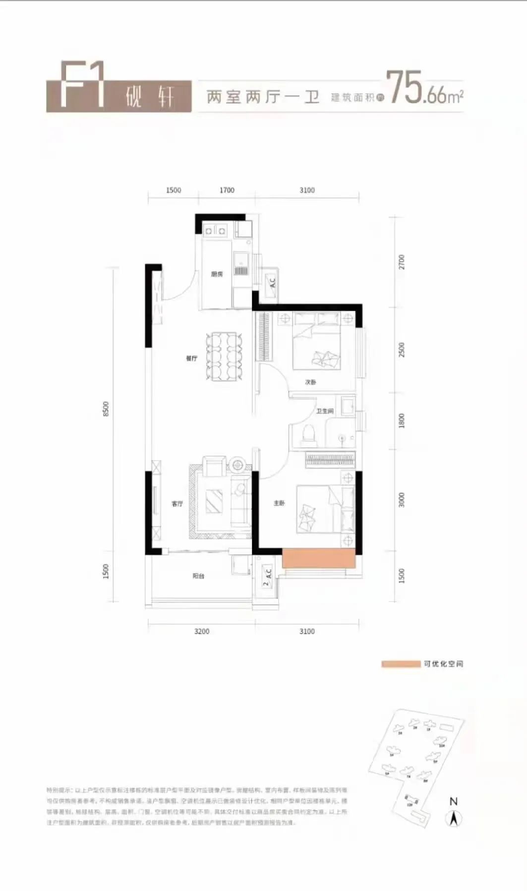 ? ? ? ?城中芯稀缺的小戶型,樓層9-26樓任選,邊戶,3米層高,總價46-47萬左右。兩房兩廳一衛(wèi),客廳帶個小陽臺。