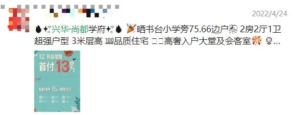 ? ? ? ?這個盤最近賣的比較好的是12#樓建面約75㎡的兩房,首付13萬起。(去看房之前提前咨詢優(yōu)惠是否還在)