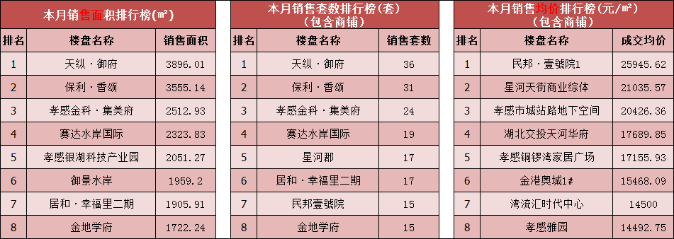 ? ? ? ?1、本篇數(shù)據(jù)為不完全統(tǒng)計(jì),新盤數(shù)據(jù)僅包含孝感主城區(qū)在售樓盤;