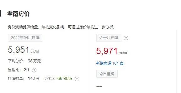 ? ? ? ?根據(jù)中國(guó)房?jī)r(jià)行情網(wǎng)顯示,孝南4月二手房掛牌價(jià)格5951元/㎡,環(huán)比下跌0.18%,同比下跌9.86%。