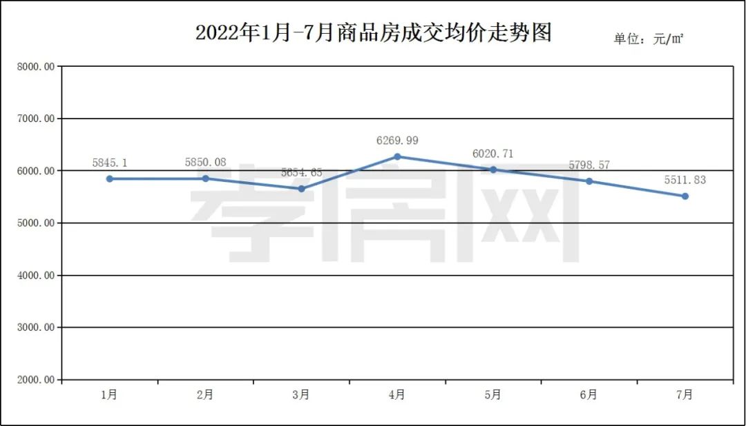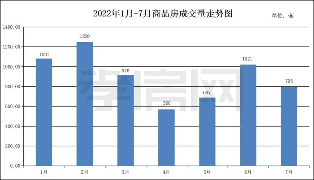 ? ? ? ?2022年07月商品房成交795套,成交面積建面約96416.05㎡,成交均價(jià)5511.83元/㎡。成交套數(shù)同比6月(1021套)下降約22.14%。