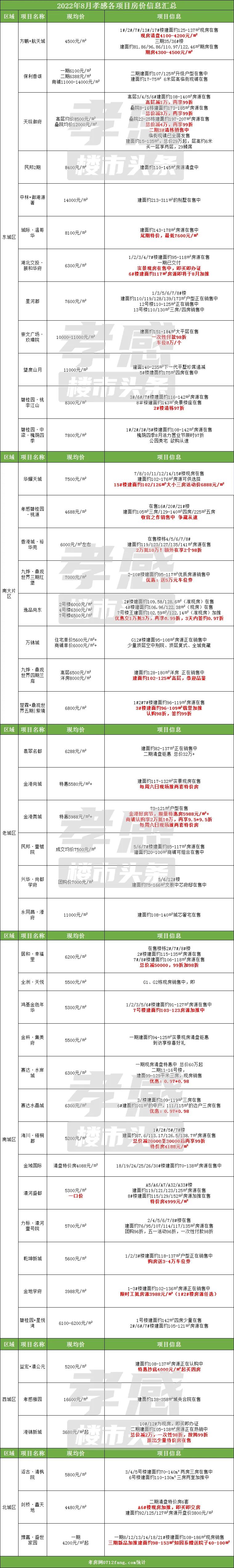 孝感45個(gè)在售樓盤(pán)8月房?jī)r(jià)匯總
