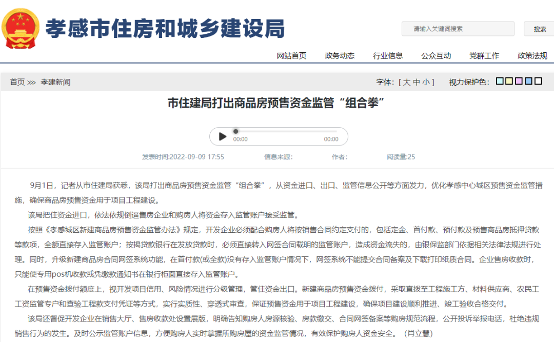 ? ? ? ?近日,市住建局打出商品房預(yù)售資金監(jiān)管“組合拳”,從資金進(jìn)口、出口、監(jiān)管信息公開等方面發(fā)力,優(yōu)化孝感中心城區(qū)預(yù)售資金監(jiān)管措施,確保商品房預(yù)售資金用于項目工程建設(shè)。