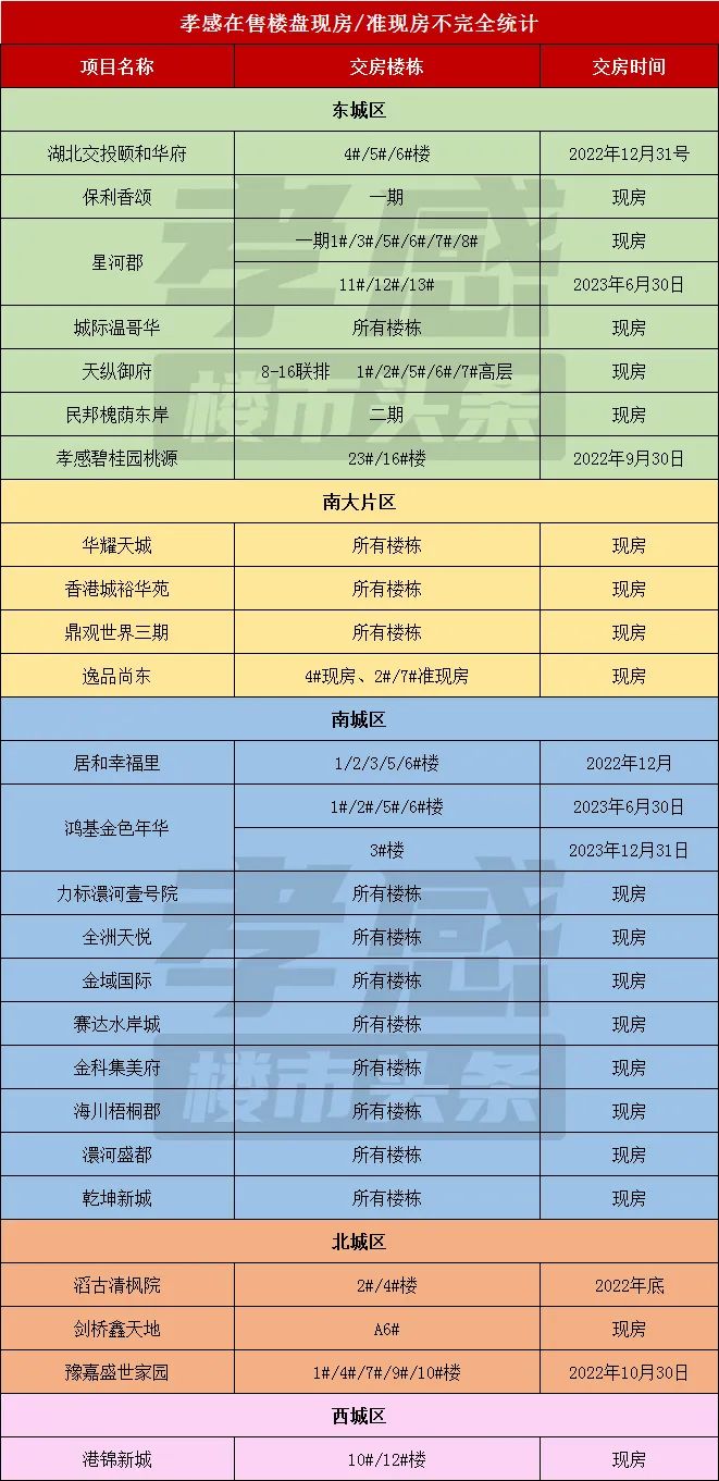 ? ? ? ?那現(xiàn)階段的孝感市場,有哪些現(xiàn)房或準(zhǔn)現(xiàn)房在售的樓盤呢?沒統(tǒng)計之前不覺得,統(tǒng)計一下發(fā)現(xiàn)孝感現(xiàn)房在售的項目挺多的。