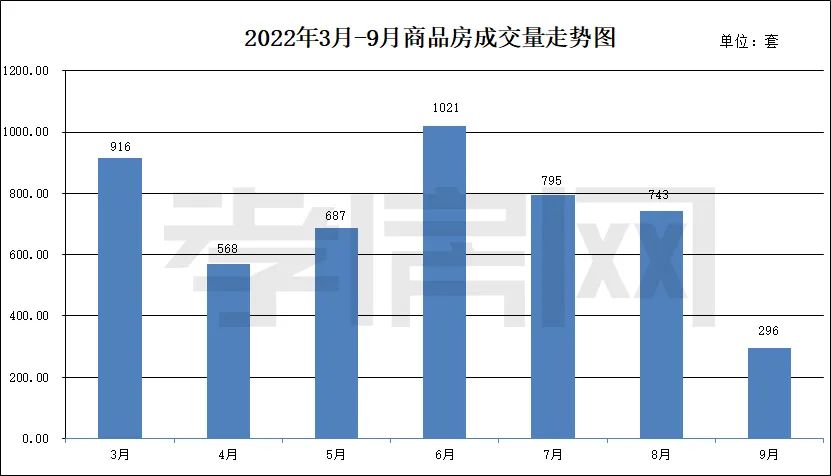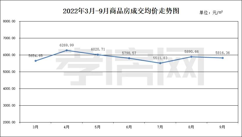 ? ? ? ?2022年09月商品房成交296套,成交面積建面約36470.60㎡,成交均價5816.36元/㎡。成交套數(shù)環(huán)比7月(743套)下降60.16%。