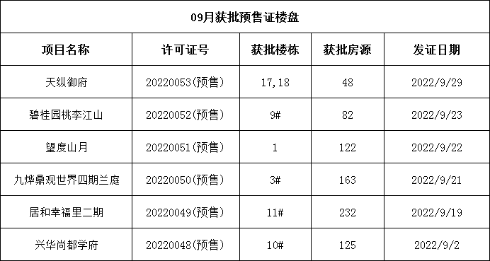 ? ? ? ?根據(jù)孝感市住房和城鄉(xiāng)建設(shè)局公布的信息,9月份孝感共6個樓盤772套房源獲批6張預(yù)售證。