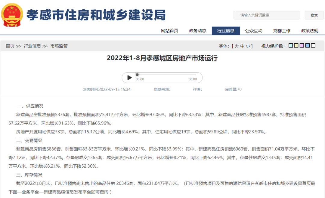 ? ? ? ?截至2022年8月末,已批準(zhǔn)預(yù)售尚未售出的商品住房 20346套,面積231.04萬平方米。