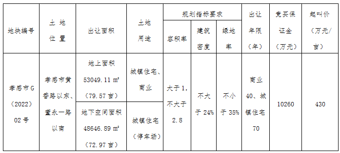? ? ? ?孝感市G(2022)02號地塊位于孝感市黃香路以東、董永一路以南。