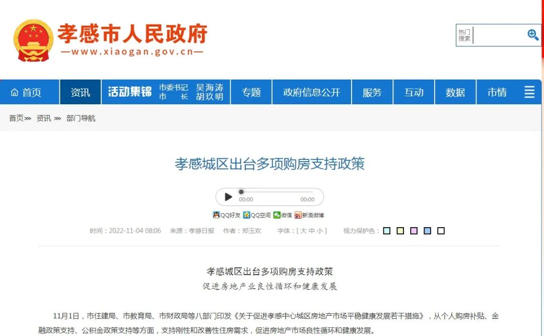 11月1日,市住建局、市教育局、市財政局等八部門印發(fā)《關(guān)于促進孝感中心城區(qū)房地產(chǎn)市場平穩(wěn)健康發(fā)展若干措施》,從個人購房補貼、金融政策支持、公積金政策支持等方面,支持剛性和改善性住房需求,促進房地產(chǎn)市場良性循環(huán)和健康發(fā)展。