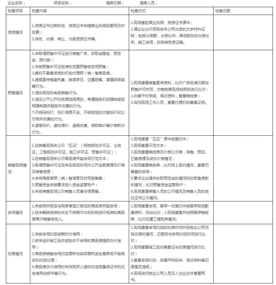 ? ? ? ?(一)加強組織協(xié)調(diào)。市住房和城鄉(xiāng)建設(shè)局和市市場監(jiān)管局要密切溝通,相互配合,確保按計劃開展聯(lián)合抽查檢查。實施檢查前,要聯(lián)系企業(yè),告知檢查事項、檢查時間、提供待查材料等。檢查時,每個單位檢查人員不得少于2人,現(xiàn)場應(yīng)出示執(zhí)法證件,并做好記錄,抽查中發(fā)現(xiàn)的案件線索,及時移交辦案部門。