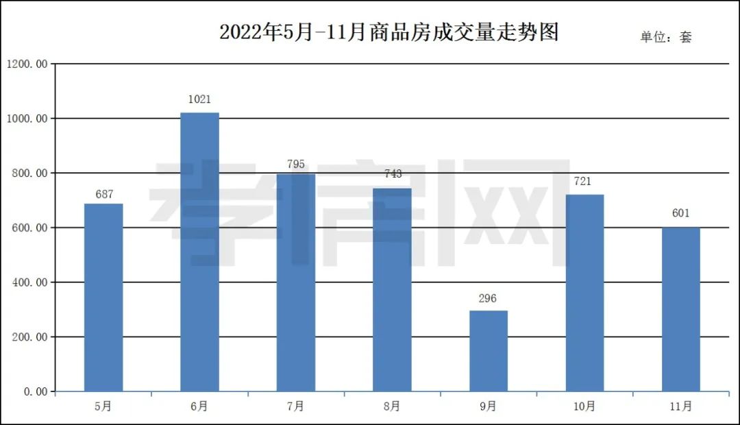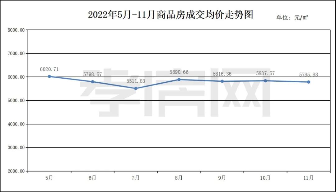 ? ? ? ?2022年11月商品房成交601套,成交面積建面約79492.29㎡,成交均價(jià)5785.88元/㎡。成交套數(shù)環(huán)比10月(721套)下降16.64%。