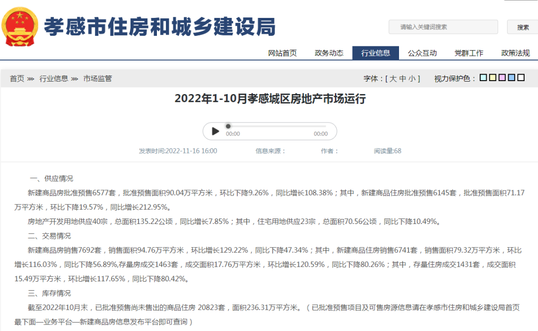 ? ? ? ?截至2022年10月末,已批準(zhǔn)預(yù)售尚未售出的商品住房20823套,面積236.31萬平方米。今年下半年孝感庫存算是逐月遞增。