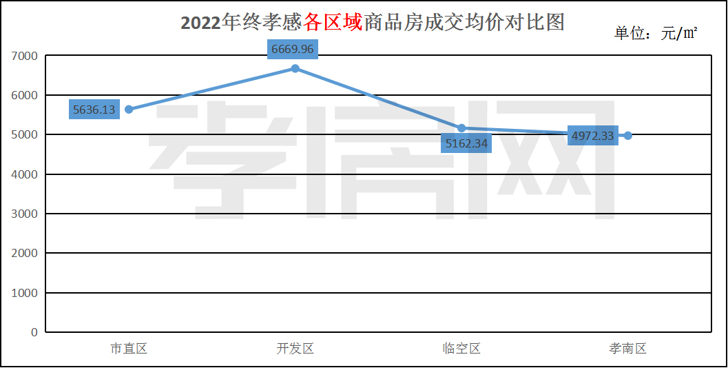 2022年終孝感各區(qū)域商品房成交均價對比圖