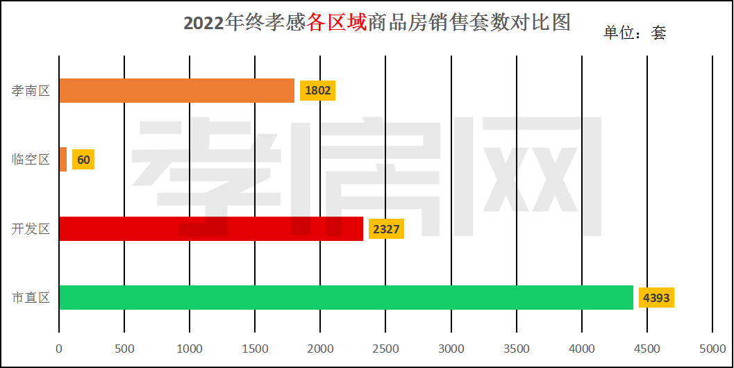 2022年終孝感各區(qū)域商品房銷售套數(shù)對比圖
