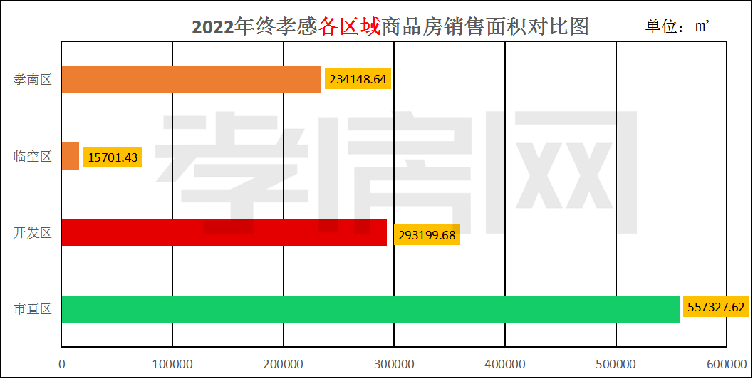 2022年終孝感各區(qū)域商品房銷售面積對比圖