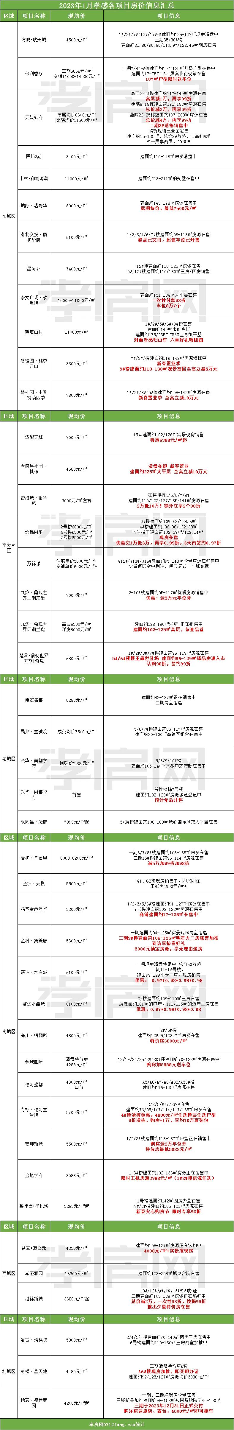 2023年孝感44個(gè)在售樓盤1月房價(jià)更新