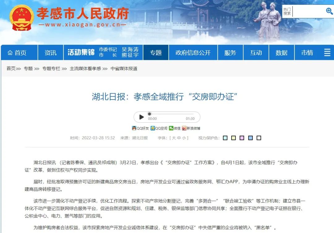 03.4月1日起,孝感全域推行“交房即辦證”!
